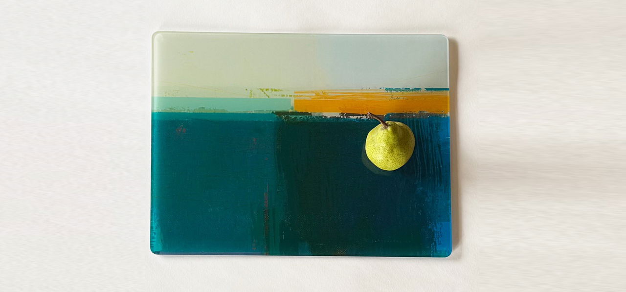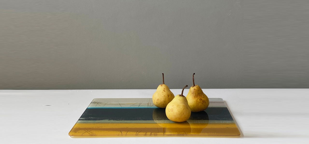 We absolutely love this glass centrepiece. We already have cushions from Earthworks and this works perfectly with them. It brightens up the dining table and is very useful at the same time.